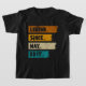 The t-shirt feels and looks great quality, a good thick cotton. It will be a little big for my son, but that means he will be able to wear it and not out grow it too soon. The print was as described on the order when personalised. True size, shape and colour T-shirt- thanks.