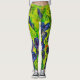 Irises in blues & purples on a bright green background. Bold abstract artistic pattern wraps around your legs....A show stopper for sure!