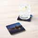 Plastic photo coaster with the windmill 'Salamander' with reflection in the water of the Vliet river with lights on at the beginning of the night in the city of Leidschendam in the Netherlands.