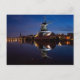 Photo postcard of the windmill 'Salamander' with reflection in the water of the Vliet river with lights on at the beginning of the night in the city of Leidschendam in the Netherlands.