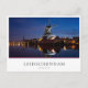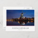 Photo postcard of the windmill 'Salamander' with reflection in the water of the Vliet river with lights on at the beginning of the night in the city of Leidschendam in the Netherlands with a white edge and in a box the text 'Leidschendam, Holland' with stripes in red, white and blue, the colours of the dutch flag.
