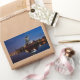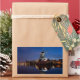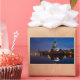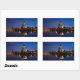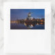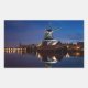 Rectangular photo sticker with the windmill 'Salamander' with reflection in the water of the Vliet river with lights on at the beginning of the night in the city of Leidschendam in the Netherlands.