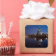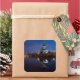 Photo sticker with the windmill 'Salamander' with reflection in the water of the Vliet river with lights on at the beginning of the night in the city of Leidschendam in the Netherlands.