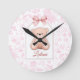 Leilani | Custom Pink Teddy Bear Nursery Design Round Clock