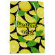 Lemon slices and leaves. Seamless pattern. Custom background colour. Custom text on both sides.