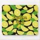 Lemon slices and leaves. Seamless pattern. Custom background colour. Custom text.