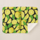 Lemon slices and leaves. Seamless pattern. Custom background colour. Custom text.