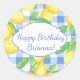 Lemon Blue White Gingham Custom Classic Round Sticker