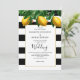 Elegant Black White and Gold colour botanical lemons Stripe Wedding Invitation.