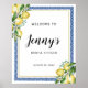 Lemon Botanical Blue Tile Bridal Shower Welcome Poster