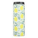 Lemon botanical pattern with a collection of bright canary yellow lemons, falling compound locust leaves, seed pods and sprouts in patina green, blue-green and greenish chartreuse. Set on white.