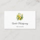Business cards with a lovely illustration of a bouquet of lemons surrounded by white blossoms leaves and sprigs.
