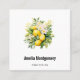 Business cards with a lovely illustration of a bouquet of lemons surrounded by white blossoms leaves and sprigs.