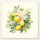 Lemon Bouquet with White Blossoms Square Paper Coaster