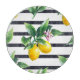 Lemon on a branch on striped background. Watercolor seamless pattern of citrus leaves, fruit and blossoms.