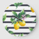 Lemon on a branch on striped background. Watercolor seamless pattern of citrus leaves, fruit and blossoms.