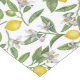 Lemon branches with blossoms and fruit on white short table runner
