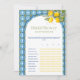 Lemon Bridal Shower Scattegories Game Card