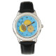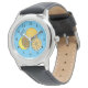The leather band makes it seem like an “older kids” watch. Easy to read the time. Clear printing and image.