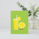 A smiling halved lemon character, standing next to a tall glass of lemonade