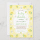 Cute, watercolor, yellow floral lemon baby shower invitation. All elements are chosen to bring good vibes, with a mix of summer colours: bright yellow, white and grass green. The charming background with dots, along with the handwritten modern and elegant script, makes this design perfect for summer baby shower celebrations.