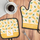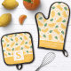 Lemon Citrus Floral Cute Summer Monogrammed Oven Mitt & Pot Holder Set