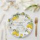 Lemon Citrus Floral White Stripe Engagement Party Paper Plate