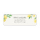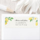 Elegant return address label featuring watercolor lemons and greenery on a warm ivory background, with the couple’s names and address in classic typography. Ideal for sealing wedding invitations, Save the Dates, and thank you cards in a citrus or Italian‑inspired wedding theme, and easy to personalize with your own details.