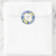 Brighten up any occasion with this classic round sticker! Featuring a yellow lemon citrus design, navy blue Mediterranean tile pattern, and floral botanical charm.