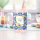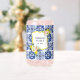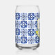 Start your morning with a touch of Italy! This lemon citrus Can Glass features a navy blue Mediterranean tile pattern, floral botanical accents, and summer vibes.