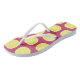 Add some zest to your summer wardrobe with these cute flip-flop sandals. They feature a stylish lemon citrus fruit pattern on a chic pink background, creating a vibrant contrast. These flip-flops are perfect for any beach or pool party, as they have a tropical design that is colourful and fun. They are also suitable for women, men, and kids, as they come in different sizes for everyone to wear. Whether you want to squeeze some lemonade or enjoy the sun, these flip-flops will make you feel fresh and fabulous. Order yours today and get ready to rock the citrus look.