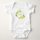 Lemon Floral Citrus Yellow and Green Wreath Baby Shower Gift Monogram Custom Baby Bodysuit details. Customise all text, font, and colours. See complete collection for more matching items.