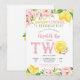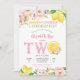 Celebrate your little ones special day with this charming lemon and floral birthday invitation. Featuring watercolor lemons and pink blossoms, this cheerful design is perfect for a summer party theme. The playful layout highlights your childs name and age while providing all the event details in a stylish format. Ideal for toddler birthdays, this invitation blends vibrant citrus accents with delicate florals to create a fresh, festive look guests will love.