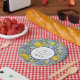 "Lemon Floral Citrus Foliage Blue 1st Holy Communion" paper plate has a fresh, modern and comfortably elegant design. Hand painted lemons and foliage branches over an Mediterranean-inspired painted tile pattern design in a fresh summer floral theme for this special day. Copyright, internationally licensed artist and designer, Audrey Jeanne Roberts, all rights reserved.