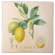 6 x 6 inch sturdy glossy ceramic tile features Lemon fruit and blossom with French text from vintage French botanical texts. Perfect accent for a French Country Kitchen or Farmhouse Kitchen.