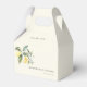 This simple elegant Mediterranean inspired favour box features watercolor lemons with elegant green leaves and an olive branch. Perfect for an outdoor, garden themed or destination wedding.