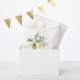 Design features watercolor lemons with elegant greenery and delicate jasmine flowers.