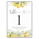 Lemon Green Citrus Wedding Table Numbers