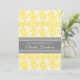 Bridal luncheon invitations in elegant bright lemon yellow, grey and white classic floral damask vintage pattern, chic and feminine, customisable with your shower details. Also available in thank you cards and invitations for the bridal party.