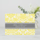Custom rehearsal dinner party invitations in modern and elegant bright lemon yellow, grey and white chic and classic floral damask vintage pattern. Personalise the text to create a unique invitation for your wedding rehearsal dinner. Contact us to request a colour change. Available in many matching wedding products.