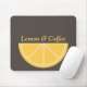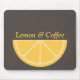 A brown mouse pad with a yellow lemon half-slice and customisable text. It could be used at home or at the office. You could also make a fresh birthday gift to your best friend!