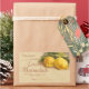 A vintage style label for jams and jellies with an illustration of lemons with green leaves, made from an old postcard painting, with brown coloured scrolls and text. The date can be left for writing the date, or change the dotted text to the year you require.