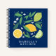 This vibrant recipe notebook design features a bold navy backdrop with playful illustrations of lemons, limes, and leafy sprigs in bright green and yellow tones. Personalised with a name at the bottom, it’s perfect for organising recipes in a cheerful, modern kitchen. A fresh and lively style for cooks who love a zesty touch.