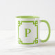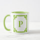 Decorative white and green Greek key style square border with a modern serif monogram.