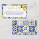 Inspired by classic Mediterranean ceramics, this elegant card features intricate blue tile patterns, adding timeless beauty to your celebration.