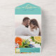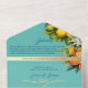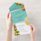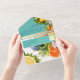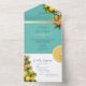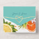 Celebrate your love with the vibrant charm of a Mediterranean citrus-inspired wedding. Our elegant, rustic, boho invitation features stunning watercolor lemon and orange fruits, set against a backdrop of teal. With a photo of the happy couple on the front, and all the necessary details and RSVP options on the back, this all-in-one invitation captures the essence of your special day. Embrace the beauty of nature and the warmth of citrus hues as you invite your guests to share in your love story.