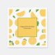 Napkins with a slice, half and full lemon pattern. A customisable text is available at the centre on a yellow background. A fresh decoration for a birthday party, a wedding, a housewarming party, a retirement, a bachelorette party, etc.