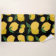 Lemon Pattern Retro Fruit Yellow On Black Beach Towel
