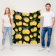 Lemon Pattern Retro Fruit Yellow On Black Fleece Blanket