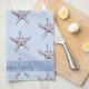 Beautiful custom name kitchen towel with a colourful watercolor Starfish pattern. Kitchen towel with personalised name in seamless delicate Starfish.